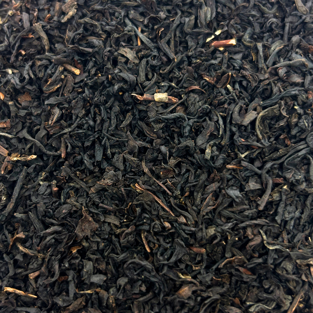 Apparence : Feuilles de thé noir Assam avec une teinte riche et profonde.
